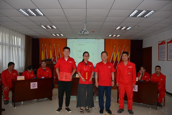 競賽圍繞黨的十九大精神、習近平新時代中國特色社會主義思想、《黨章》、公司企業文化、學習強國等內容開展知識問答。必答題、搶答題、風險題、觀眾搶答題等知識環節設置,使得整場比賽氣氛熱烈,各代表隊陣容齊整,斗志昂揚,才思敏捷,在必答題環節就進入了激烈比拼,各隊比分交替上升,參賽選手對黨章、黨史、國史、企業文化等諸多題目對答如流。最終,經過激烈的角逐,黨總支第三黨小組獲得本次競賽第一名,第五黨小組獲二名,第四黨小組獲三名。