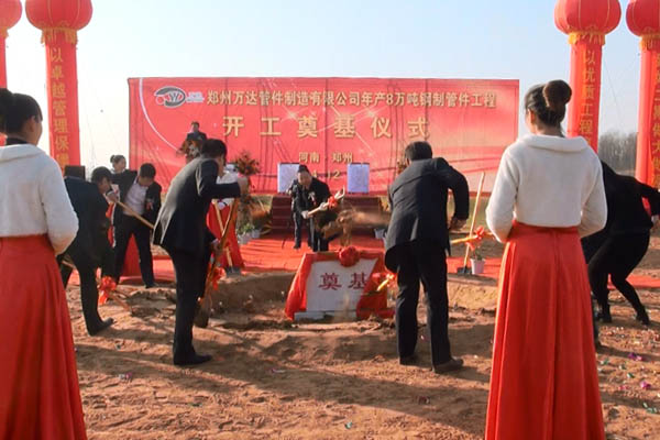 2014年12月2日,在公司二期工程建設(shè)項(xiàng)目工程現(xiàn)場(chǎng)隆重舉行鄭州萬達(dá)管件制造有限公司年產(chǎn)80000噸鋼制管件工程開工奠基儀式。它的開工建設(shè),標(biāo)志著鄭州萬達(dá)的發(fā)展又掀開了嶄新的一頁,又昂首步入了更加廣闊的新天地,必將對(duì)公司的發(fā)展產(chǎn)生重大而深遠(yuǎn)的影響。