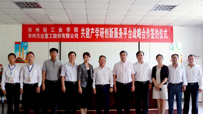 2016年9月21日,由鄭州萬達重工股份有限公司與鄭州輕工業學院共同建立的產學研創新服務平臺戰略合作簽約揭牌儀式在鄭州萬達重工股份有限公司順利舉行。