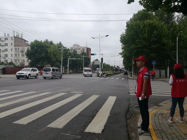 活動中,黨員志愿者和青年志愿者統(tǒng)一身著志愿者服裝,分別走上不同路口,手舉“文明交通志愿者”紅旗,嚴(yán)謹(jǐn)認(rèn)真地站在路口指揮交通,引導(dǎo)群眾走人行道、并熱心地為前來詢問路段的群眾指引方向,展現(xiàn)出萬達(dá)重工志愿者良好形象。