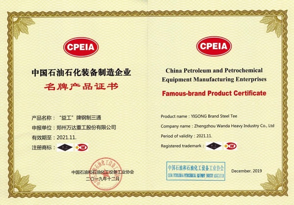 為更好落實(shí)“中國(guó)制造2025”的發(fā)展戰(zhàn)略,培育企業(yè)具有科技創(chuàng)新水平的名牌產(chǎn)品,根據(jù)《中國(guó)石油石化裝備制造服務(wù)行業(yè)名牌產(chǎn)品推薦辦法》規(guī)定,經(jīng)過企業(yè)自愿申報(bào)、行業(yè)部門初審、專家評(píng)審等環(huán)節(jié),萬達(dá)重工 “益工”牌“堆焊復(fù)合彎頭”和“益工牌鋼制三通”等2類產(chǎn)品被中國(guó)石油和石油化工設(shè)備工業(yè)協(xié)會(huì)評(píng)定為中國(guó)石油石化裝備制造企業(yè)名牌產(chǎn)品并頒發(fā)證書。
