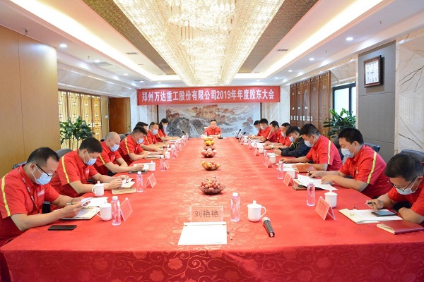 2020年6月16日上午九點整,鄭州萬達重工股份有限公司2019年度股東大會在公司行政樓8樓貴賓室召開。公司董事長、書記何清,董事、總經(jīng)理張付峰,監(jiān)事會主席于江山與各股東、董事、監(jiān)事參加會議。