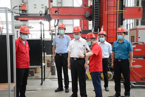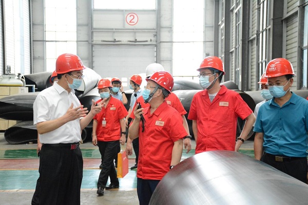 吳福民副市長一行深入堆焊智能制造車間、彎制車間等生產車間進行參觀指導,實地了解公司的生產運營情況,股份公司董事長、書記何清就公司科技創新、生產裝備、技術及生產能力、產品市場等情況向調研組作了詳細匯報,吳副市長對萬達重工現代化的生產管理、一流的產品競爭能力表示肯定,勉勵企業進一步提升企業核心競爭力,努力把企業做優做強做大。