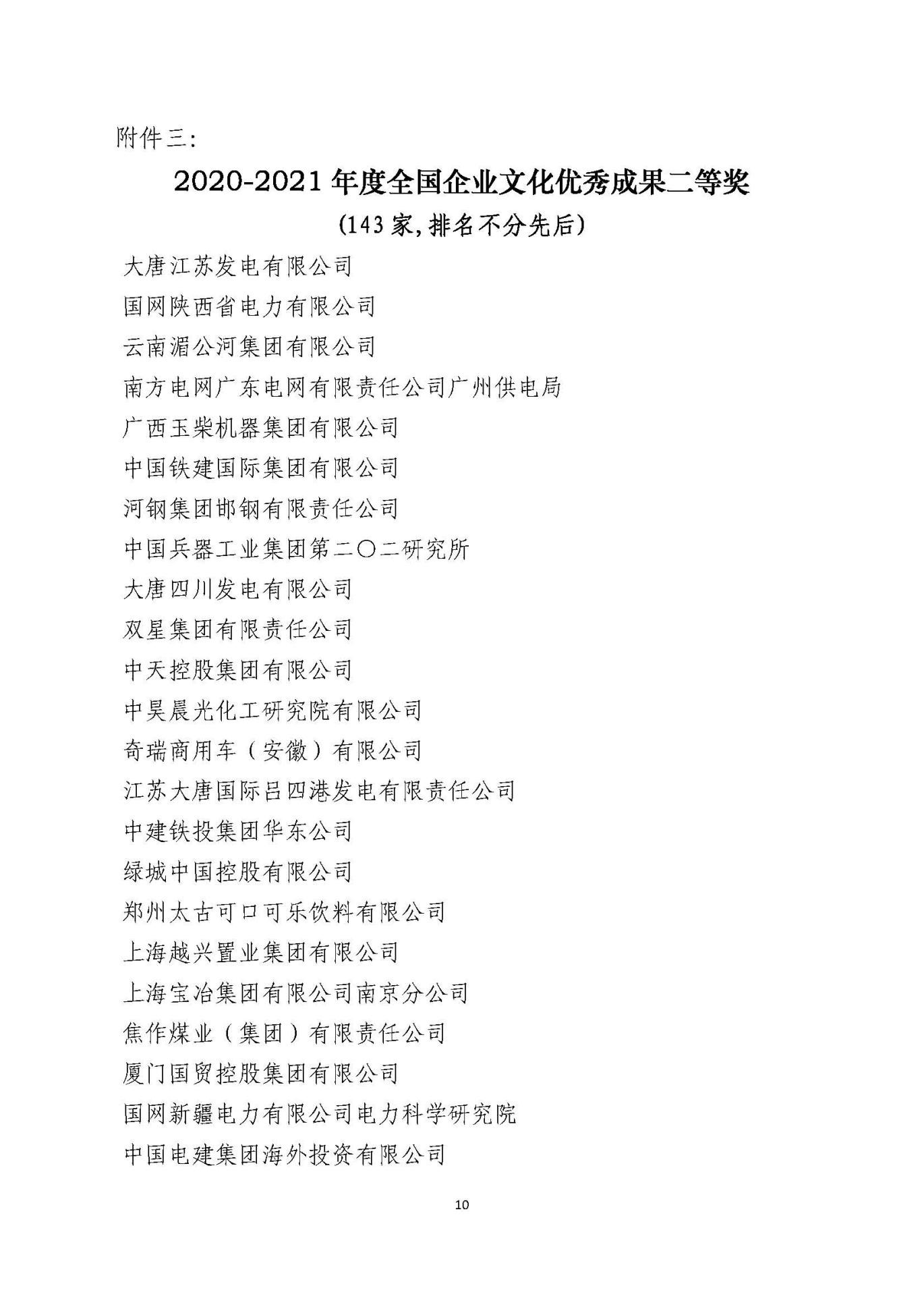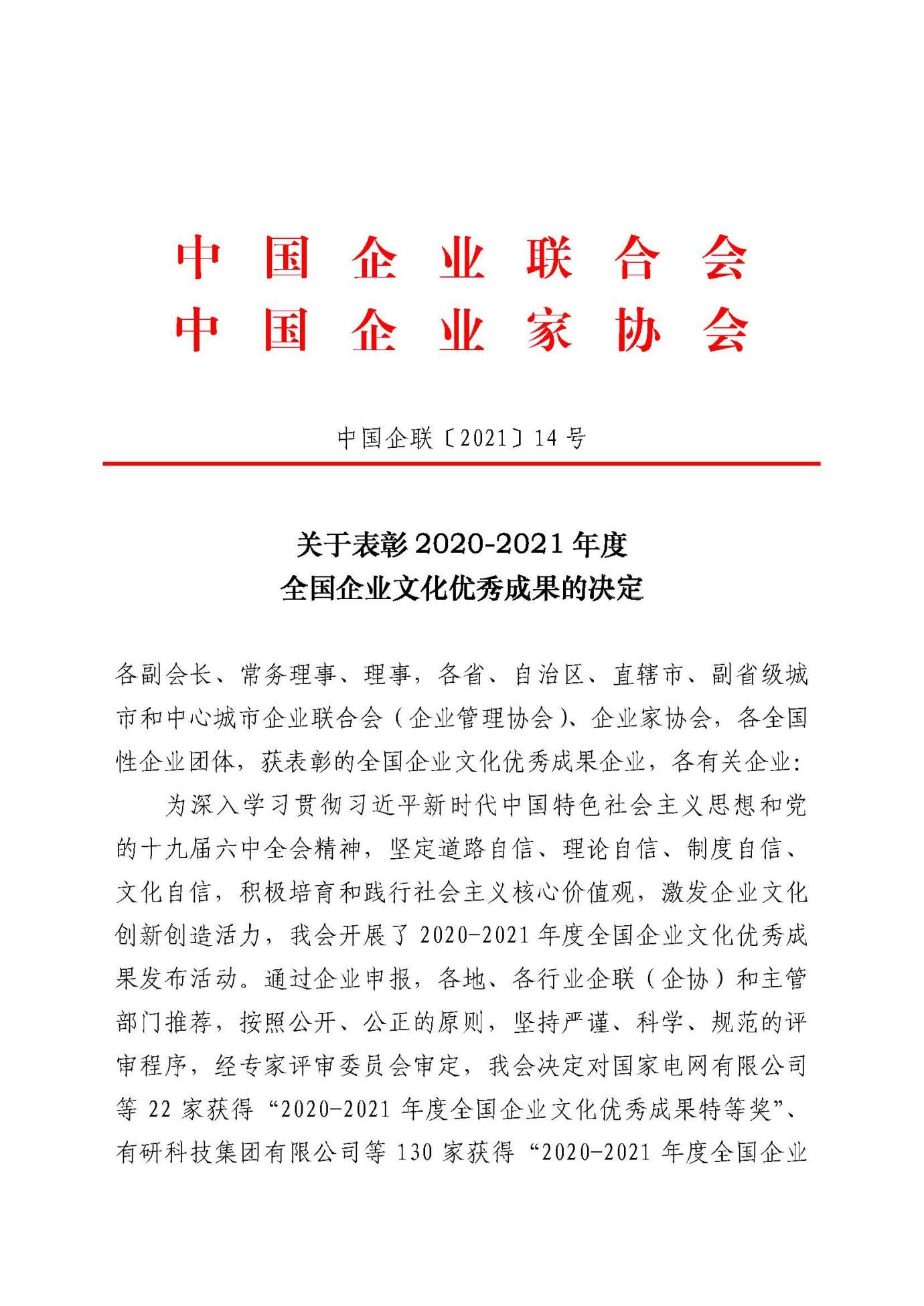 據(jù)悉,“全國(guó)企業(yè)文化優(yōu)秀成果”是經(jīng)中央九部委清理整頓評(píng)比達(dá)標(biāo)表彰后批準(zhǔn)保留的評(píng)選表彰項(xiàng)目,也是全國(guó)企業(yè)文化領(lǐng)域唯一保留的表彰項(xiàng)目,更是國(guó)內(nèi)企業(yè)文化優(yōu)秀成果的最高榮譽(yù),每?jī)赡昱e辦一屆,屬于國(guó)家級(jí)獎(jiǎng)項(xiàng)。近日,中國(guó)企業(yè)聯(lián)合會(huì)、中國(guó)企業(yè)家協(xié)會(huì)印發(fā)文件表彰了2020-2021年度全國(guó)企業(yè)文化優(yōu)秀成果企業(yè),鄭州萬(wàn)達(dá)重工股份有限公司榮獲“2020-2021年度全國(guó)企業(yè)文化優(yōu)秀成果二等獎(jiǎng)”!