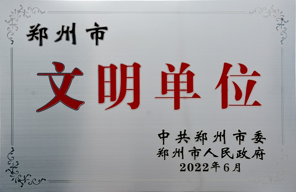 熱烈祝賀萬達重工榮獲“鄭州市文明單位”榮譽稱號