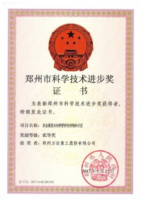 鄭州萬達重工股份有限公司榮獲2017年鄭州市科學技術進步獎和專利獎