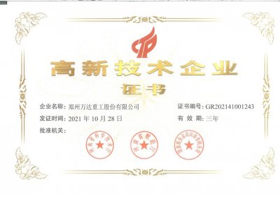熱烈祝賀鄭州萬達重工股份有限公司順利通過“高新技術企業(yè)”認定
