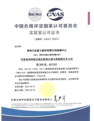 熱烈祝賀鄭州萬達重工股份有限公司順利通過CNAS實驗室認定