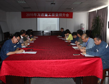 2016/01/28 322 4月29號下午,作為公司質量月活動的一個專項內容,各部門在行政區會議室召開2015年萬達重工質量提升會。會議對公司三年來典型工作質量問題進行了梳理、歸納,客觀分析影響工作質量的原因。各部門負責人都進行了發言,著重對所負責部門工作質量進行了剖析及本部門在質量月是如何提升崗位工作質量的。大家各抒己見,建言獻策,共同維護質量...