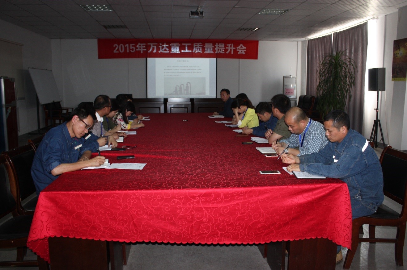 4月29號下午,作為公司質量月活動的一個專項內容,各部門在行政區會議室召開“2015年萬達重工質量提升會”。會議對公司三年來典型工作質量問題進行了梳理、歸納,客觀分析影響工作質量的原因。各部門負責人都進行了發言,著重對所負責部門工作質量進行了剖析及本部門在質量月是如何提升崗位工作質量的。大家各抒己見,建言獻策,共同維護“質量興、萬達興”的公司質量文化。